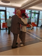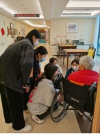 結束交流后,同學們在泰康之家工作人員的帶領下,分組進入園區(qū)的護理公寓,在園區(qū)護理師團隊老師的指導下,一同參與到在園區(qū)生活的長者們的文體活動中,與長者們一起完成一個小游戲、一幅畫、一首舞曲,并送上同學們對長者們的祝福。