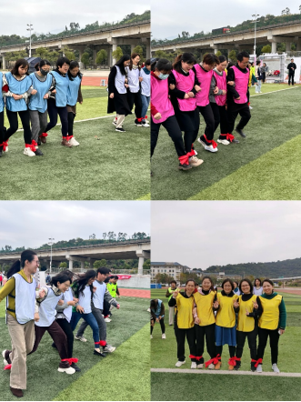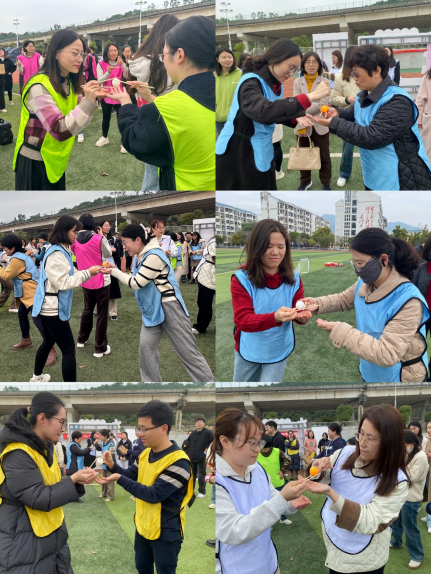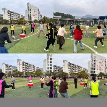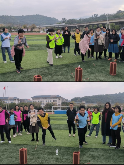 觀看完家風(fēng)教育微電影,大家移步田徑場(chǎng)開(kāi)展趣味運(yùn)動(dòng)會(huì)。比賽項(xiàng)目有筷子夾球、五人六足、足球進(jìn)框、同心擊鼓、趣味投壺五個(gè)項(xiàng)目,秉持增進(jìn)部門(mén)間溝通交流的目的,不同部門(mén)、教研室的老師和輔導(dǎo)員們分成9支隊(duì)伍,她們個(gè)個(gè)精神飽滿(mǎn)、滿(mǎn)腔熱情地投入到趣味運(yùn)動(dòng)會(huì)中。現(xiàn)場(chǎng)加油聲、吶喊聲、喝彩聲此起彼伏,不論輸贏大家都歡聲笑語(yǔ),充分展示蓬勃向上的巾幗風(fēng)采和拼搏向上、勇于爭(zhēng)先的團(tuán)隊(duì)精神。