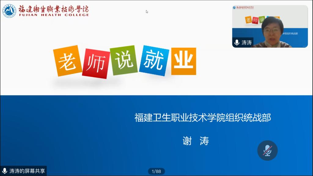 為貫徹落實全國、全省2024屆普通高校畢業(yè)生就業(yè)創(chuàng)業(yè)工作會議精神,幫助畢業(yè)生高質(zhì)量充分就業(yè),切實發(fā)揮黨建引領(lǐng)作用,聚焦解決學(xué)生“急難愁盼”問題,1 月24 日,護理學(xué)院學(xué)生第一黨支部線上開展“老師說就業(yè)”主題黨日活動,本次講座邀請到原護理學(xué)院黨總支書記、現(xiàn)任校黨委組織統(tǒng)戰(zhàn)部部長謝濤為護理學(xué)院2024屆畢業(yè)生做專題分享,學(xué)生第一黨支部書記吳鋒主持會議,護理學(xué)院270多位同學(xué)線上聆聽。