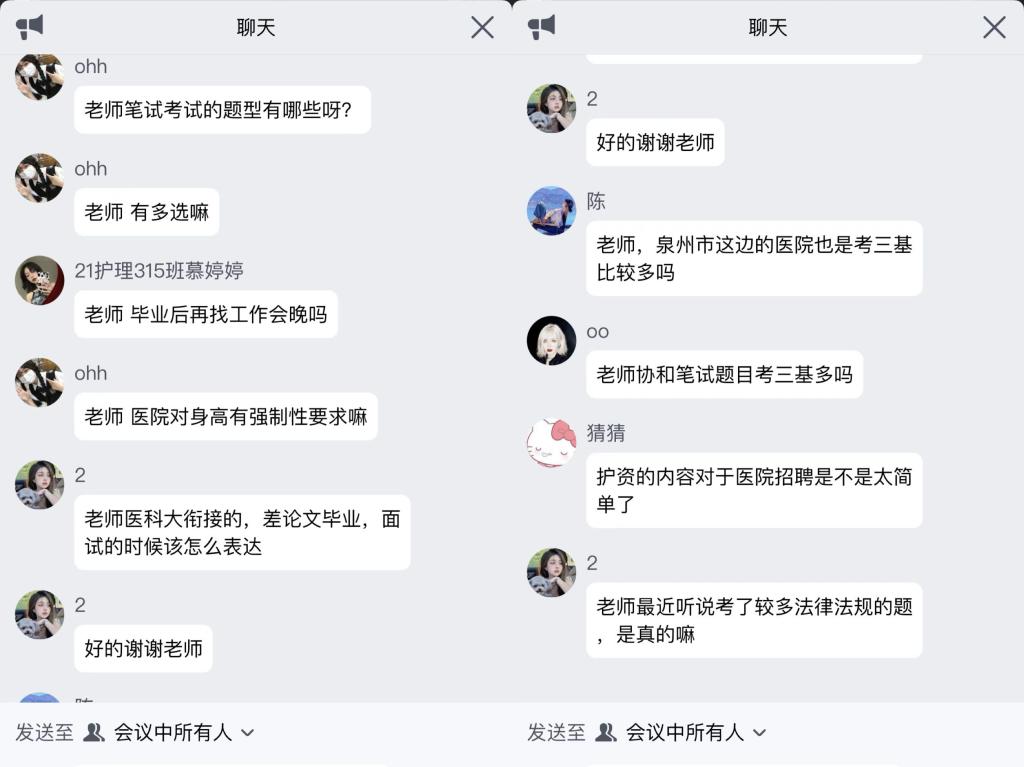 21護理307班許子怡表示:在整個分享會過程中,老師以專業(yè)又聯(lián)系實際的方式,讓我們深入了解了關(guān)于招聘考試內(nèi)容復(fù)習(xí)方法。指導(dǎo)我們?nèi)绾沃b、發(fā)型、妝容、形體儀態(tài),為我們在困惑擔憂之際帶來了很多解決辦法,老師針對各個醫(yī)院備考復(fù)習(xí)的內(nèi)容,讓我本無目的的復(fù)習(xí)豁然開朗。
