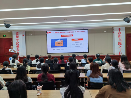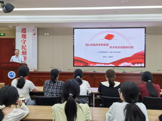 9月12日下午,校黨委書記曾武祈以“同心擘畫改革新藍圖 攜手奮進強國新征程”為題,走進24護理303、304班為我校師生專題宣講黨的二十屆三中全會精神暨秋季開學(xué)第一課。