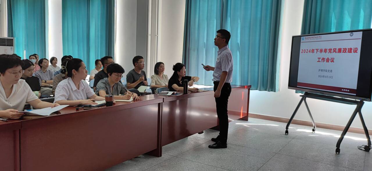 9月19日下午,我院在201會議室召開2024年下半年全面從嚴(yán)治黨暨師德師風(fēng)警示教育工作會議,總結(jié)了學(xué)院2024年以來黨風(fēng)廉政建設(shè)和反腐敗工作,并對下階段工作進行部署。校紀(jì)委委員、組織統(tǒng)戰(zhàn)部部長謝濤到會指導(dǎo)。學(xué)院黨委班子成員、全體教職工參加會議。