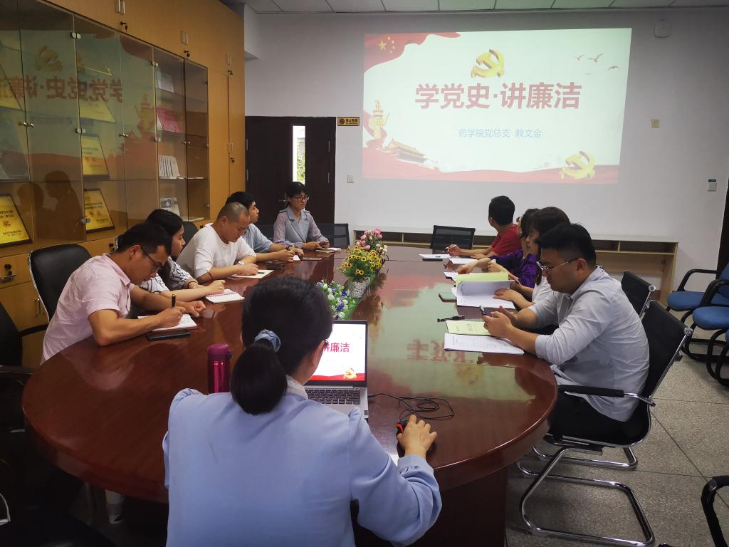 5月21日,藥學(xué)院學(xué)生第一、第二、第三黨支部召開“學(xué)黨史、講廉潔”專題黨課,藥學(xué)院黨總支副書記賴文金授課。