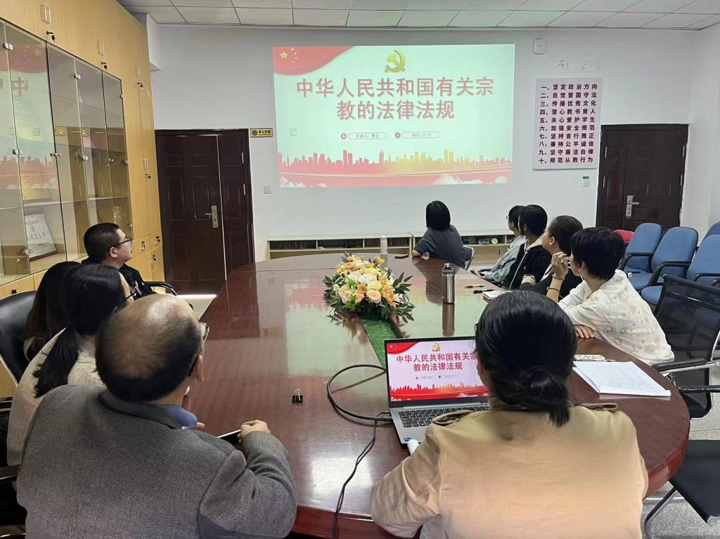 藥學(xué)院第一黨支部書記羅蘭以中華人民共和國有關(guān)宗教的法律法規(guī)”為題,重點(diǎn)圍繞黨的宗教政策解讀了《中華人民共和國憲法》和《宗教事務(wù)條例》中有關(guān)宗教的法律法規(guī)。羅蘭強(qiáng)調(diào),我國堅(jiān)持宗教信仰自由政策,同時(shí)全體黨員應(yīng)認(rèn)真學(xué)習(xí)中國特色社會(huì)主義宗教理論、黨的宗教政策和國家有關(guān)法律法規(guī),提高思想認(rèn)識(shí),牢固樹立馬克思主義宗教觀,增強(qiáng)民族宗教工作的責(zé)任感和使命感,助力今后的工作中更好地將鑄牢中華民族共同體意識(shí)主線與立德樹人根本任務(wù)緊密結(jié)合。