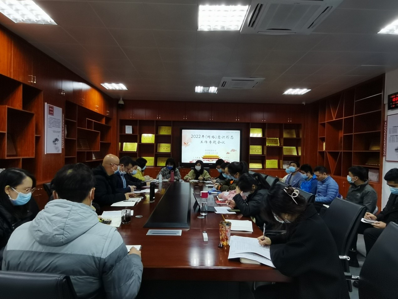 12月15日上午,醫(yī)學院組織召開2022年度(網(wǎng)絡(luò))意識形態(tài)工作專題會議,研究、研判和部署當前以及今后意識形態(tài)領(lǐng)域的相關(guān)工作。會議由黨總支書記邱滾忠主持,院領(lǐng)導班子全體成員、各黨支部書記、支委、教研室主任、團總支書記以及全體輔導員參加會議。