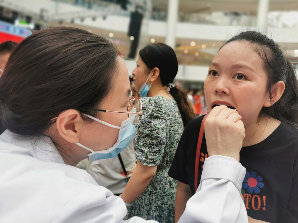 活動現(xiàn)場,我校醫(yī)學院口腔教研室教師黨員為閩侯縣甘蔗街道居民及附近村民進行口腔檢查,解答口腔相關(guān)問題并給予專業(yè)性指導,同時還科普宣傳了口腔知識,受到當?shù)厝罕姷囊恢潞迷u。