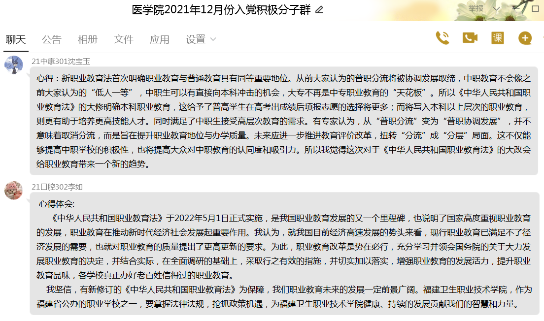 5月11日,醫(yī)學(xué)院第二黨支部采取線上線下相結(jié)合的方式,開展“強(qiáng)學(xué)習(xí)、深思考、重提升--學(xué)習(xí)新修訂的《中華人民共和國職業(yè)教育法》”主題黨日活動(dòng),支部全體黨員、入黨積極分子共同參加了此次活動(dòng)。