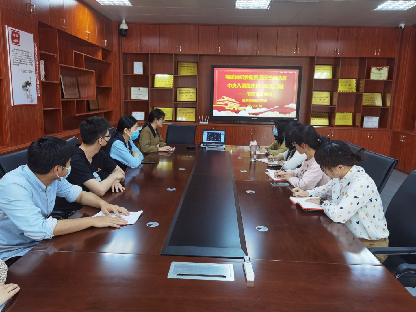 五一勞動(dòng)節(jié)將至,為深入貫徹落實(shí)中央八項(xiàng)規(guī)定精神,進(jìn)一步嚴(yán)明節(jié)日期間紀(jì)律要求,樹立風(fēng)清氣正的良好環(huán)境,2022年4月29日,醫(yī)學(xué)院第三黨支部開展節(jié)前警示教育,本次主題黨日由支部紀(jì)檢委員兼組織委員林丹丹主持,支部黨員參加活動(dòng)。