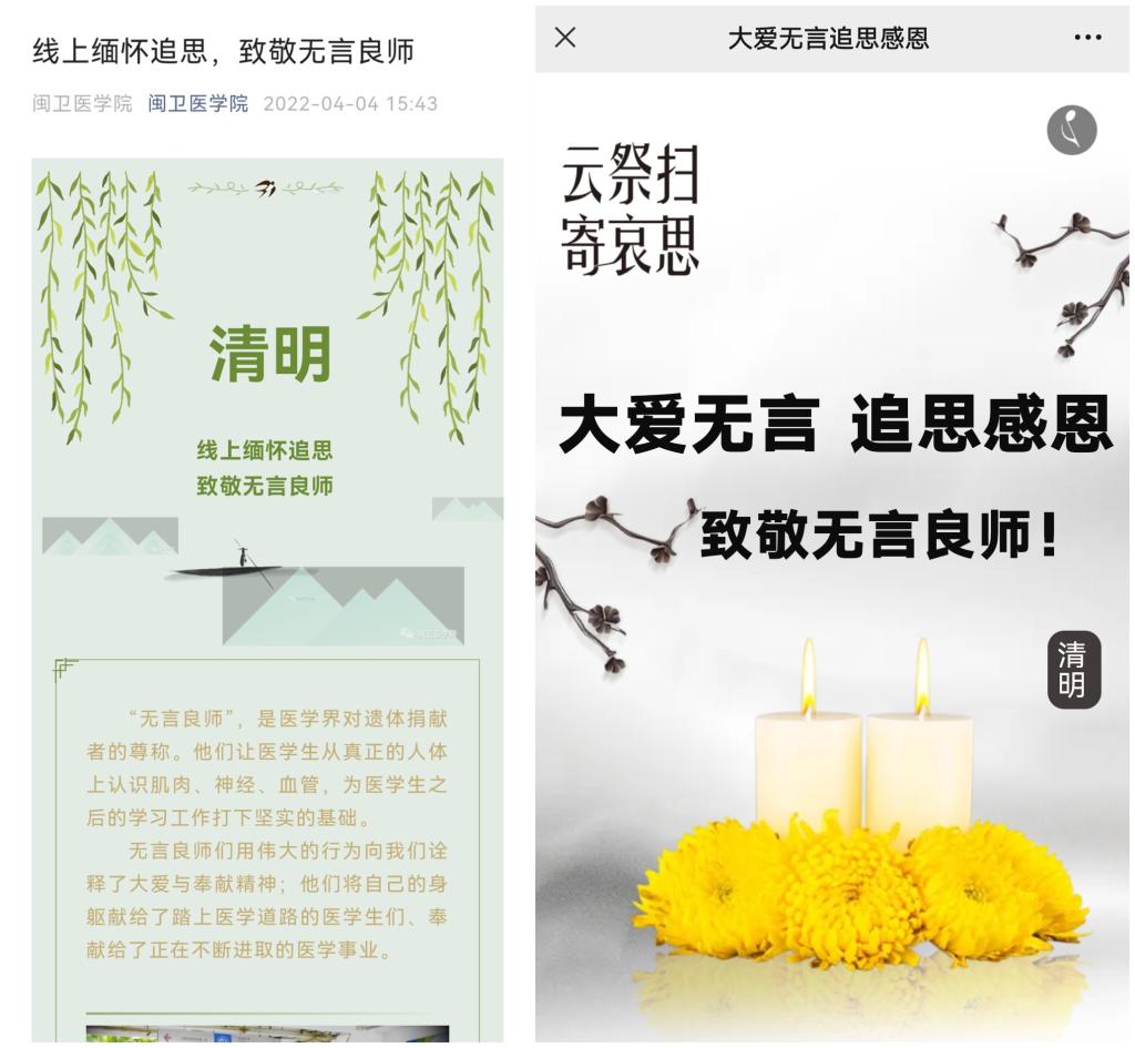 在本次活動前期,支部制作了專題追思推文,及線上云祭掃鏈接,發(fā)布于醫(yī)學院公眾號,支部各位黨員同志、解剖學教研室教師通過轉發(fā)宣傳,號召各班級同學學習緬懷?;顒右簧暇€,就得到了同學們的積極參與。