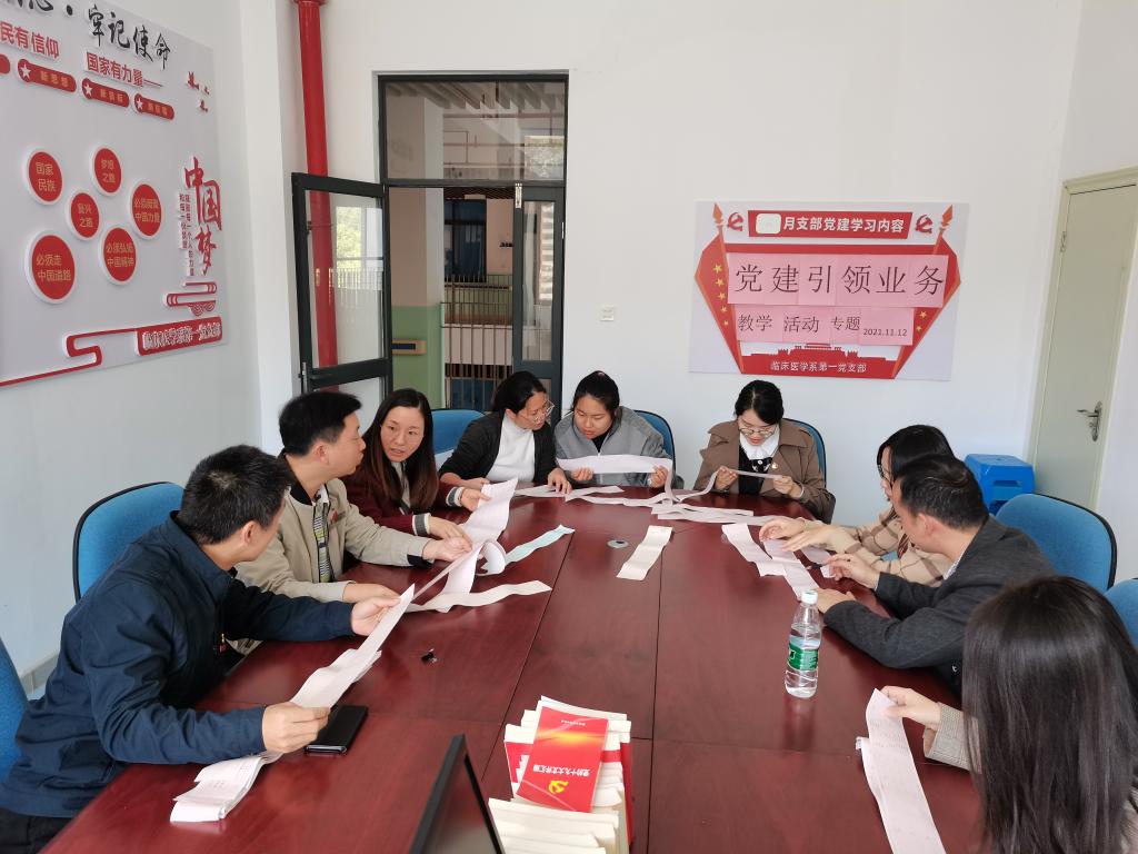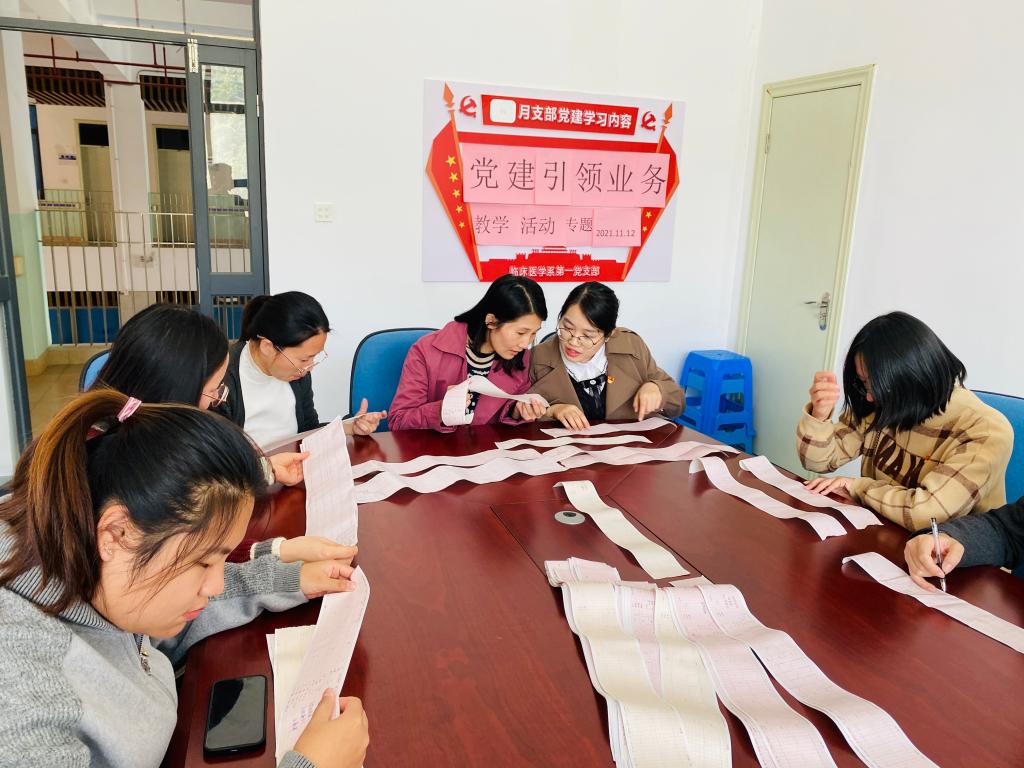 為更好地提高備課質(zhì)量,增強(qiáng)教學(xué)效果,進(jìn)一步提升教學(xué)質(zhì)量和水平,11月12日,醫(yī)學(xué)系黨總支第一黨支部組織臨床專業(yè)教師開展集體備課活動(dòng)?;顒?dòng)由支部書記朱翔主持,口腔專業(yè)的黨員教師參與討論。