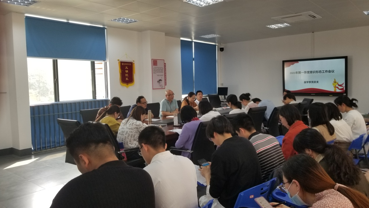 4月1日,醫(yī)學(xué)系黨總支在實(shí)訓(xùn)樓311會(huì)議室召開2021年第一季度意識(shí)形態(tài)工作專題會(huì)議。會(huì)議由系黨總支書記邱滾忠主持,黨總支各委員、各支部委員、教研室主任和全體輔導(dǎo)員參加了此次會(huì)議。