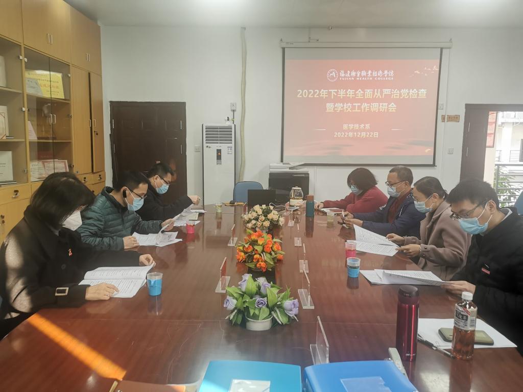 2022年12月22日,黨委書記曾武祈帶隊來到醫(yī)學(xué)技術(shù)系黨總支開展2022下半年全面從嚴(yán)治黨主體責(zé)任落實情況檢查。