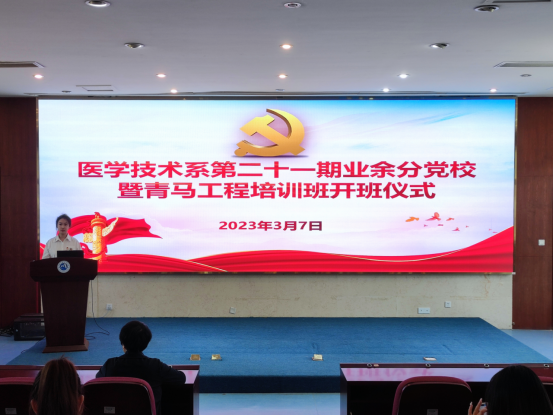 3月7日,醫(yī)學(xué)技術(shù)系第二十一期業(yè)余分黨校暨青馬工程培訓(xùn)班開班。醫(yī)學(xué)技術(shù)系黨總支書記柯瓊鶯出席開班儀式并作動員講話。醫(yī)學(xué)技術(shù)系副書記林燕,學(xué)生黨支部書記、團(tuán)總支書記、團(tuán)總支副書記以及培訓(xùn)班學(xué)員參加開班儀式。