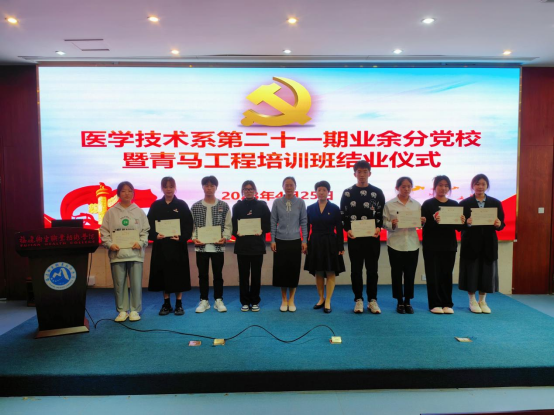 4月25日,醫(yī)學(xué)技術(shù)系第二十一期業(yè)余分黨校暨青馬工程培訓(xùn)班結(jié)業(yè)儀式在實(shí)訓(xùn)樓四樓報(bào)告廳舉行。醫(yī)學(xué)技術(shù)系黨總支書記柯瓊鶯、副書記林燕,學(xué)生黨支部書記、團(tuán)總支書記、副書記以及培訓(xùn)班學(xué)員參加本次結(jié)業(yè)儀式。儀式由22影像301班陳雨薇同學(xué)主持。