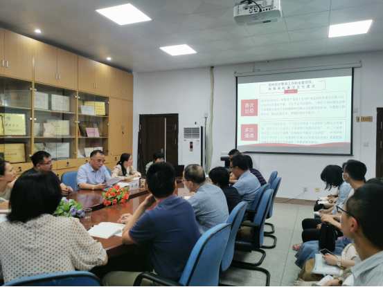 5月23日,校紀(jì)委書記游鋒以《用習(xí)近平新時(shí)代中國(guó)特色社會(huì)主義思想鑄校園文化之魂 厚培育人沃土》為題,講授主題教育專題黨課。學(xué)校主題教育協(xié)調(diào)推進(jìn)三組成員、院直機(jī)關(guān)黨員代表、醫(yī)學(xué)技術(shù)系黨員干部代表等40余人參加學(xué)習(xí)。