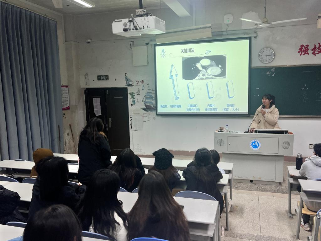 沈鴻君同學(xué)對(duì)如何高效聽(tīng)課進(jìn)行了闡述,并分享了醫(yī)學(xué)影像專業(yè)課的幾種學(xué)習(xí)方法。還根據(jù)自己在實(shí)習(xí)中的經(jīng)驗(yàn)提出,大學(xué)課程的學(xué)習(xí)不僅要注重理論知識(shí)的積累,還要關(guān)注實(shí)踐操作能力的培養(yǎng)。她建議學(xué)弟學(xué)妹們?cè)?/span>理論課堂上認(rèn)真聽(tīng)講,還要抓牢實(shí)訓(xùn)機(jī)會(huì),多加練習(xí)。