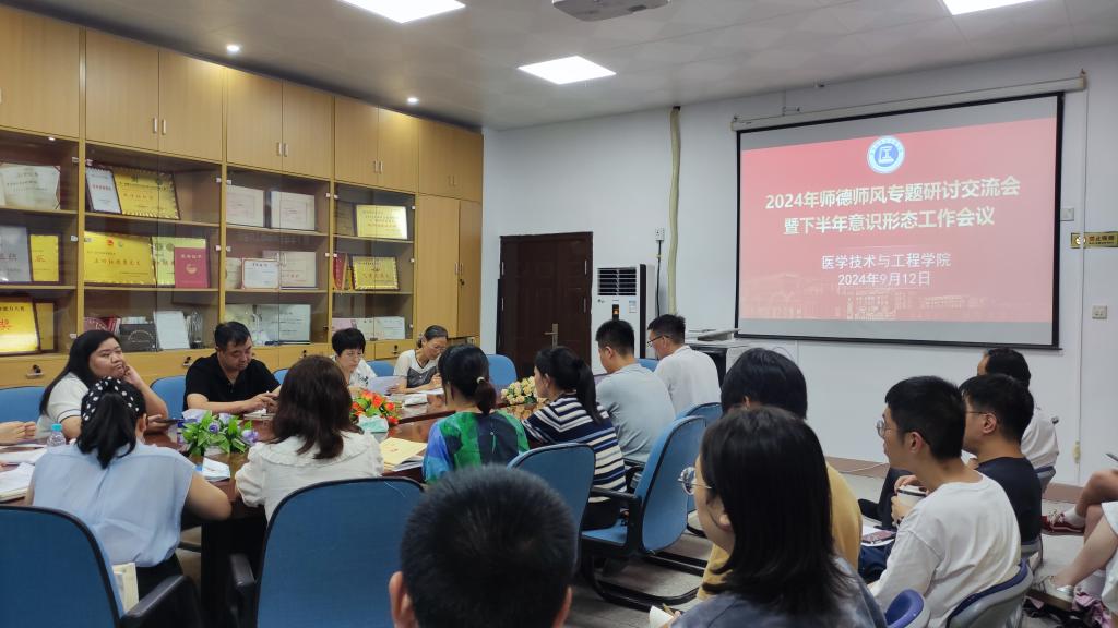 9月12日,醫(yī)學(xué)技術(shù)與工程學(xué)院召開2024年師德師風(fēng)專題研討交流會暨下半年意識形態(tài)工作會議。會議由學(xué)院黨委書記柯瓊鶯主持,學(xué)院意識形態(tài)工作領(lǐng)導(dǎo)小組及辦公室成員、學(xué)院院長、專業(yè)帶頭人等參加會議。