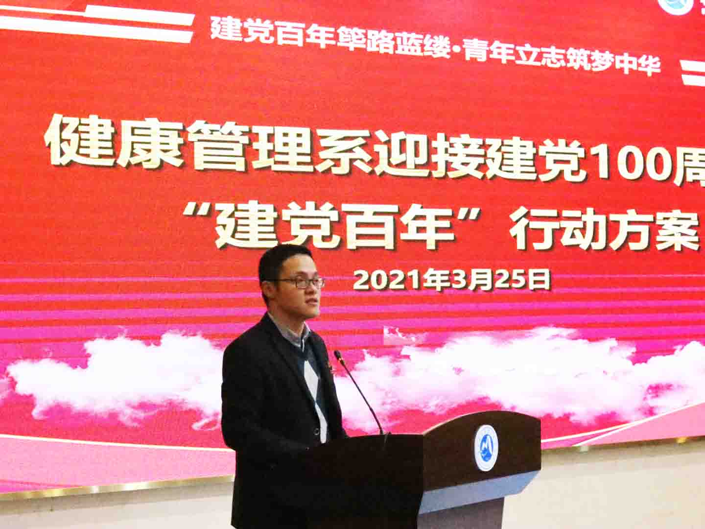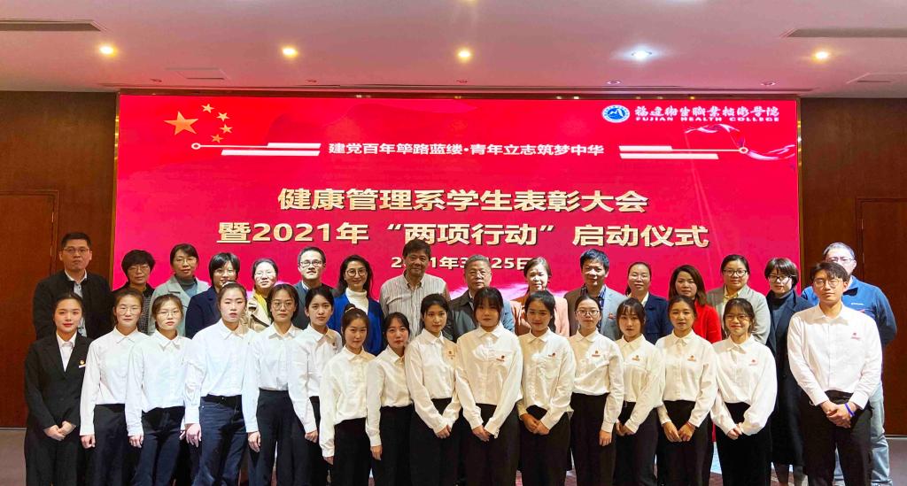 2021年3月25日下午,健康管理系以“建黨百年篳路藍(lán)縷,青年立志筑夢(mèng)中華”為主題,舉行學(xué)生表彰大會(huì)暨2021年“兩項(xiàng)行動(dòng)”啟動(dòng)儀式,大會(huì)表彰了2019~2020學(xué)年先進(jìn)集體和先進(jìn)個(gè)人,啟動(dòng)了健康管理系2021年迎接建黨100周年“建黨百年”行動(dòng)和“學(xué)生管理質(zhì)量提升”行動(dòng)。校領(lǐng)導(dǎo)陳貞健副院長(zhǎng)出席活動(dòng)并講話,學(xué)工部副部長(zhǎng)張麗萍、系關(guān)工委鄭向紅主任、王屏副主任、伍麗萍老師,系黨政班子成員及全體教職工和學(xué)生代表400多人參加活動(dòng)。