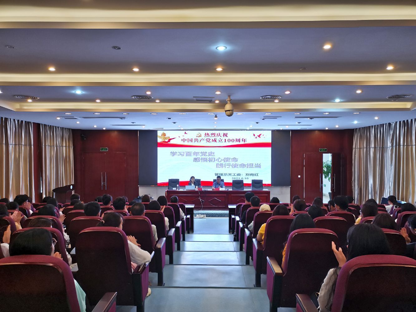 為扎實推進黨史學(xué)習(xí)教育走深走實,做到學(xué)史明理、學(xué)史增信、學(xué)史崇德、學(xué)史力行,進一步加強師生黨員的黨性修養(yǎng)。6月10日下午,在實訓(xùn)樓報告廳,健康管理系開展以“學(xué)習(xí)百年黨史,感悟初心使命,踐行使命擔(dān)當(dāng)”主題講座,健康管理系關(guān)工委主任鄭向紅主講嘉賓,健康管理系總支黨書記黃曦主持,師生黨員代表和入黨積極分子代表共120人參加此次講座。