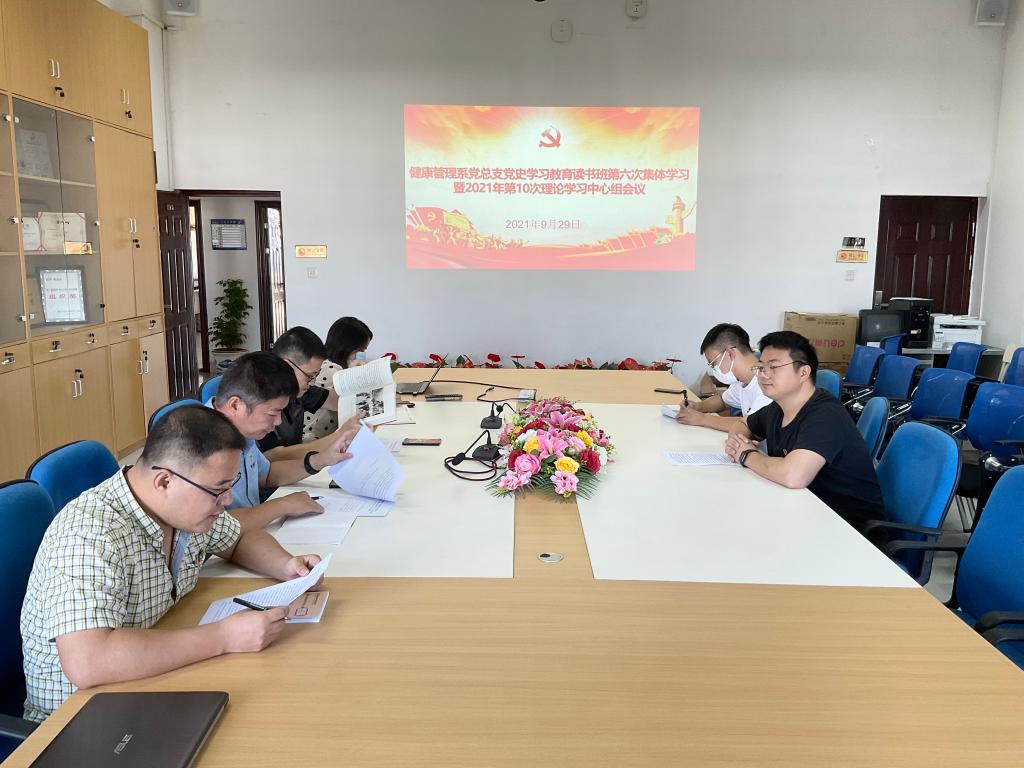 2021年9月29日,健康管理系黨史學(xué)習(xí)教育讀書班第六次學(xué)習(xí)暨中心組學(xué)習(xí)會在會議室505召開專題學(xué)習(xí),本次學(xué)習(xí)會議由健康管理系黨總支書記黃曦主持。