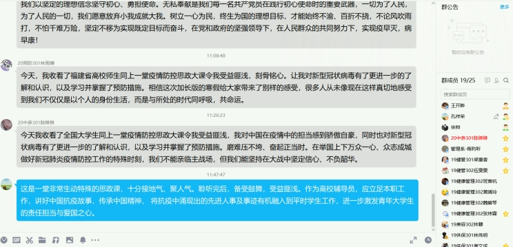 本次思政大課既有學理支撐和理論蘊含,又緊密結合防疫一線感人事跡,引發(fā)了上課師生的強烈共鳴。直播課程結束后,本支部師生黨員反響熱烈。