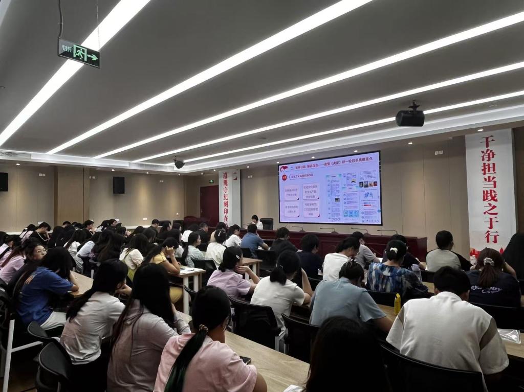 9月12日,校黨委副書記李美華在行政樓6樓會議室為健康學(xué)院師生宣講黨的二十屆三中全會精神,學(xué)院黨政班子成員、師生黨員、學(xué)生代表等共100余人現(xiàn)場聆聽。