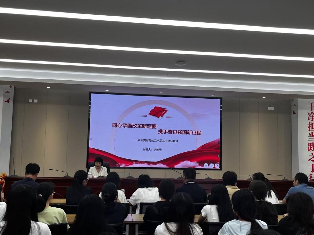 宣講會伊始,李美華以《同心擘畫改革新藍(lán)圖,攜手奮進(jìn)強(qiáng)國新征程》為主題。從“回望歷程 恒守初心——回顧改革開放以來黨的歷屆三中全會”歷史角度,逐一回顧了改革開放以來黨的歷屆三中全會,從黨的十一屆三中全會開啟改革開放偉大征程,到黨的十八屆三中全會吹響全面深化改革的號角,再到黨的二十屆三中全會進(jìn)一步擘畫全面深化改革、推進(jìn)中國式現(xiàn)代化的新藍(lán)圖,歷屆三中全會無不彰顯了中國共產(chǎn)黨人的初心與使命。