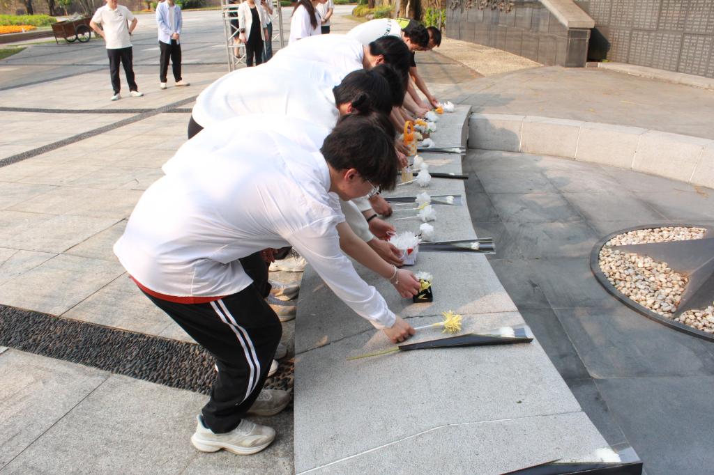 花束敬獻(xiàn)英烈,哀思祭奠忠魂。支部全體黨員在福州抗日志士紀(jì)念墻前莊嚴(yán)列隊(duì)、鞠躬默哀,敬獻(xiàn)手工制作的紙?jiān)ㄊ?/span>,追思革命先烈的豐功偉績(jī),表達(dá)深切緬懷和敬仰之情。福州抗日志士紀(jì)念墻鐫刻8700多位福州籍抗日志士的芳名,這是兩岸目前鐫刻國(guó)共兩黨抗日志士英名最多的大型抗日紀(jì)念設(shè)施。展現(xiàn)福州人民艱苦卓絕的抗戰(zhàn)歷史和百折不撓的全民族抗戰(zhàn)精神。本次敬獻(xiàn)的紙?jiān)ㄊ晒残l(wèi)生與健康管理學(xué)院學(xué)生會(huì)安教部組織學(xué)生制作,他們認(rèn)真學(xué)習(xí)了紙?jiān)ɑ@花束的制作方法,精心制作著各種花朵,用彩紙細(xì)心地折疊、剪裁、粘貼,每一片花瓣都蘊(yùn)含著他們的深情與敬意,表達(dá)對(duì)革命先烈的敬仰。