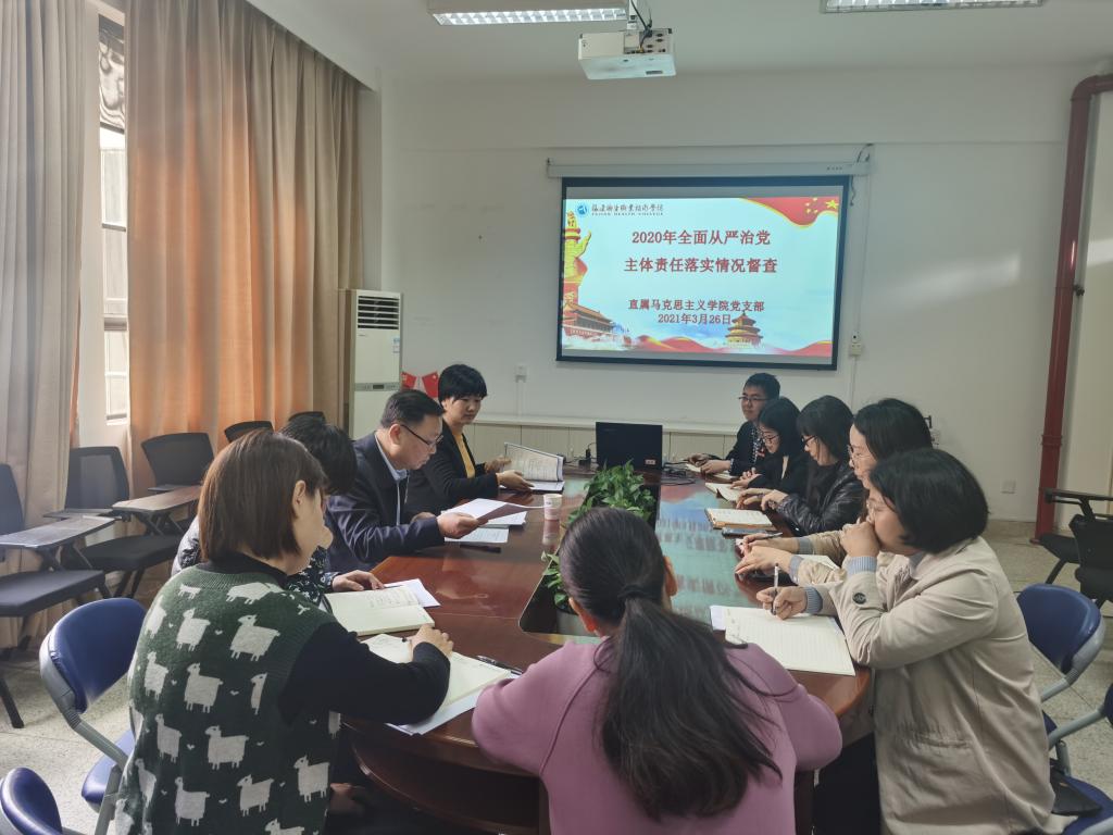 2021年3月26日上午,直屬馬克思主義學(xué)院黨支部在行政樓107會(huì)議室開(kāi)展2020年全面從嚴(yán)治黨主體責(zé)任落實(shí)情況督查工作匯報(bào)會(huì),學(xué)院黨委曾武祈書(shū)記、組織統(tǒng)戰(zhàn)部吳華部長(zhǎng)等督查組成員出席了會(huì)議,直屬馬克思主義學(xué)院熊美蘭書(shū)記及其他支部委員參加了會(huì)議。