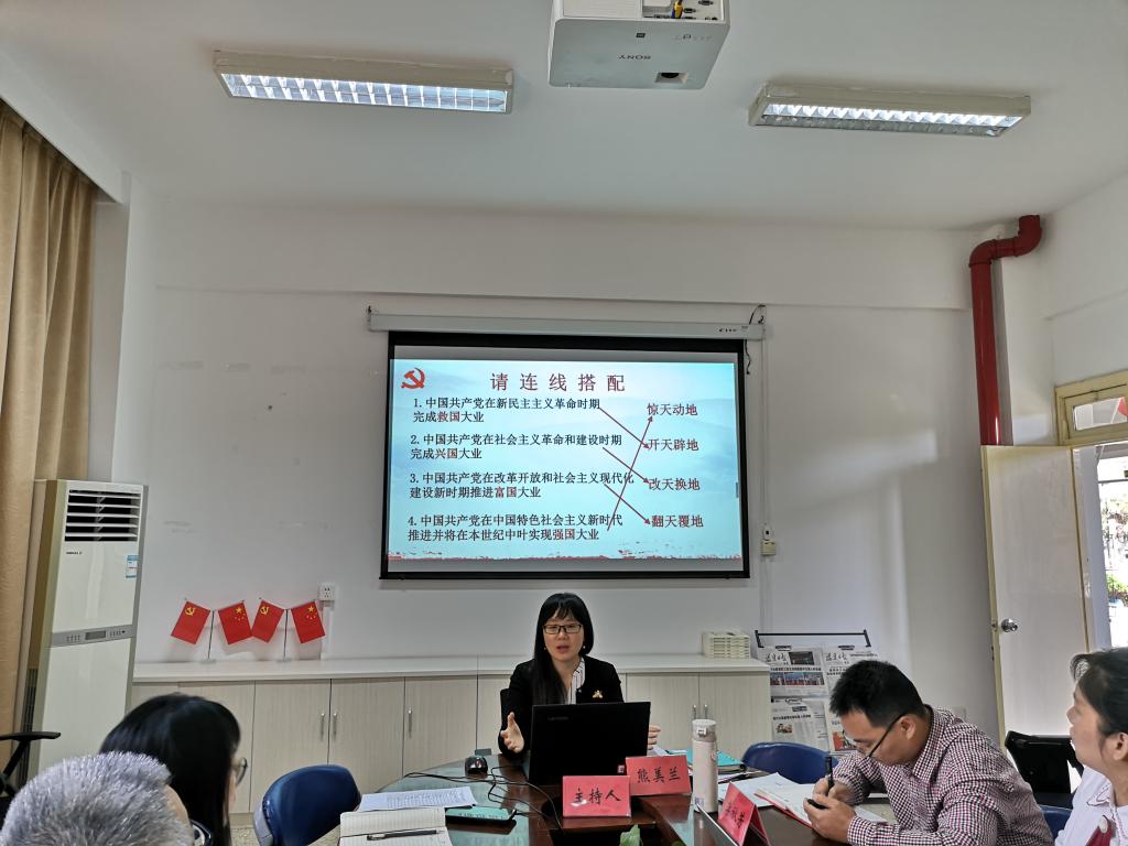 2021年5月6日上午,直屬馬克思主義學院黨支部書記熊美蘭以《百年回響 初心如磐 傳承榮光》為題,為支部全體黨員作了黨史學習教育專題黨課報告。