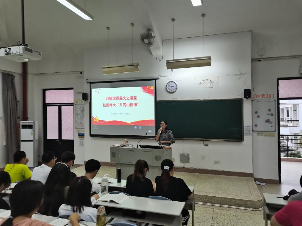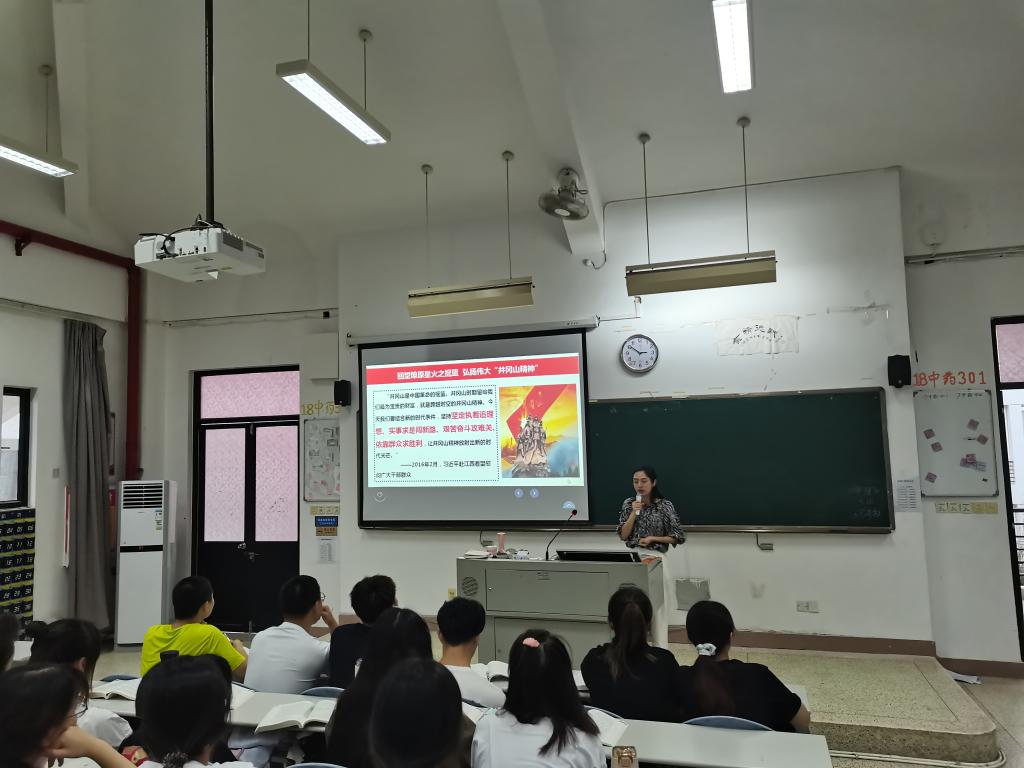 2021年5月18日下午,馬克思主義學(xué)院張茵珠老師在教學(xué)樓309教室為20藥學(xué)301-302、針推302班作《回望燎原星火之搖籃 弘揚(yáng)偉大“井岡山精神”》專題宣講。張茵珠老師通過(guò)講述國(guó)民革命失敗后,以毛澤東同志、朱德同志為代表的老一輩無(wú)產(chǎn)階級(jí)革命家,在秋收起義和南昌起義遭到嚴(yán)重挫折的情況下,如何審時(shí)度勢(shì),率領(lǐng)工農(nóng)革命軍進(jìn)軍井岡山,帶領(lǐng)同學(xué)們一起學(xué)習(xí)八百里巍峨井岡山創(chuàng)造的偉大的井岡山精神,以及在新時(shí)代如何弘揚(yáng)和發(fā)展井岡山精神。