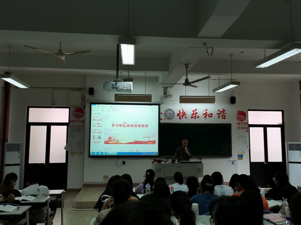 同學(xué)們到達(dá)班級(jí)后,莫慧蕓上臺(tái)跟大家分享有關(guān)焦裕祿精神的學(xué)習(xí)內(nèi)容。宣講內(nèi)容分為三部分:焦裕祿個(gè)人簡(jiǎn)歷、焦裕祿事跡介紹、學(xué)習(xí)和弘揚(yáng)焦裕祿精神。莫慧蕓重點(diǎn)聯(lián)系實(shí)際,從牢記宗旨、勤儉節(jié)約、實(shí)事求是、知難而進(jìn)等四個(gè)方面學(xué)習(xí)和弘揚(yáng)焦裕祿精神。宣講結(jié)束后,胡濟(jì)林作了精彩點(diǎn)評(píng),認(rèn)為莫慧蕓的宣講準(zhǔn)備充分,課件制作精美,內(nèi)容熟悉,條理清楚,能夠聯(lián)系實(shí)際,對(duì)深入了解優(yōu)秀共產(chǎn)黨員的先進(jìn)事跡,弘揚(yáng)其偉大的革命精神,進(jìn)而把握中國(guó)共產(chǎn)黨的宗旨,樹立中國(guó)特色社會(huì)主義理想信念具有重要意義。之后,莫慧蕓分享了自己的準(zhǔn)備過程和學(xué)習(xí)心得體會(huì),同學(xué)們聽了都受到很大的啟發(fā)和教育,表示也要積極參與到“四史”宣講活動(dòng)中。