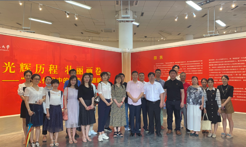 2021年5月28日,福建省高等學(xué)校思想政治教育研究會開展建黨百年華誕慶祝主題黨日活動,組織在榕高校黨員代表參觀“光輝歷程 壯麗畫卷——美術(shù)作品中的黨史”主題展。該展覽由福建師范大學(xué)美術(shù)學(xué)院主辦,我校直屬馬克思主義學(xué)院黨支部書記、馬克思主義學(xué)院院長熊美蘭作為學(xué)院黨員代表參加了本次活動。