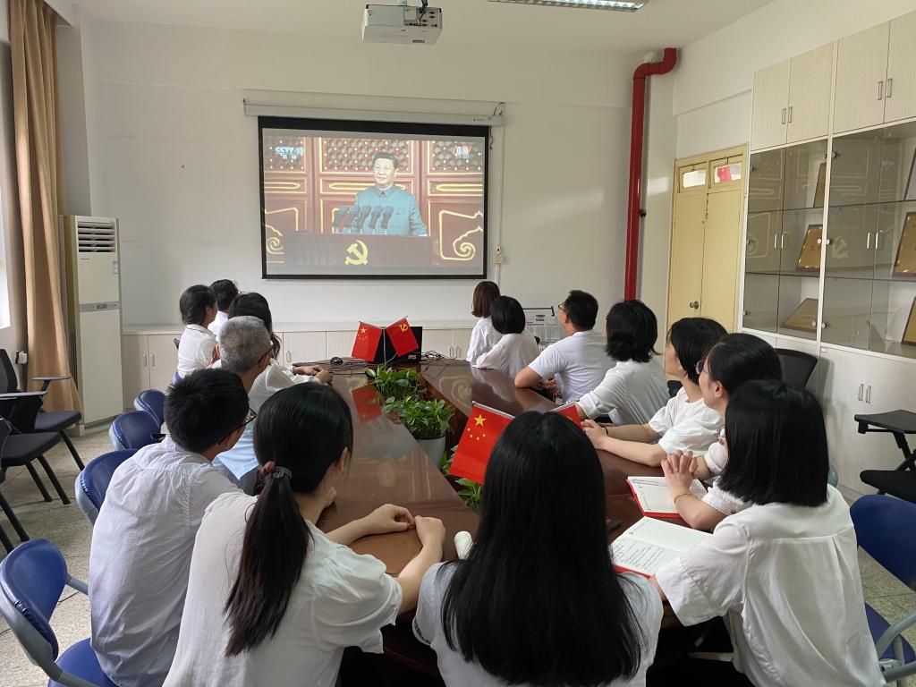為推動(dòng)黨史學(xué)習(xí)教育在基層黨組織中走深走實(shí),及貫徹落實(shí)省委“再學(xué)習(xí)、再調(diào)研、再落實(shí)”活動(dòng)精神,直屬馬克思主義學(xué)院黨支部全體黨員教師于2021年7月1日上午8:00準(zhǔn)時(shí)集合在會(huì)議室107,集中學(xué)習(xí)和觀看實(shí)況直播“慶祝中國(guó)共產(chǎn)黨成立100周年大會(huì)”,同時(shí)傳達(dá)學(xué)習(xí)了習(xí)近平總書記在慶祝中國(guó)共產(chǎn)黨成立100周年“七一勛章”頒授儀式上重要講話精神,會(huì)議由直屬馬克思主義學(xué)院黨支部書記、黨史學(xué)習(xí)教育領(lǐng)導(dǎo)小組組長(zhǎng)熊美蘭主持。