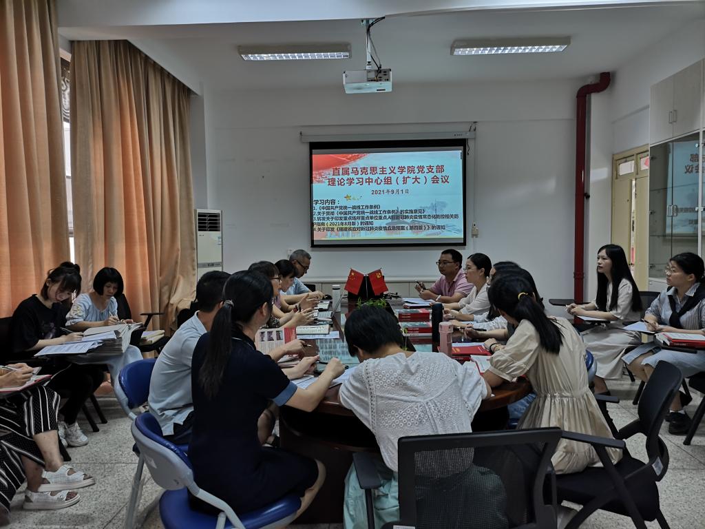 2021年9月1日,直屬馬克思主義學(xué)院黨支部在行政樓107召開黨支部理論學(xué)習(xí)中心組(擴(kuò)大)會(huì)議,會(huì)議由黨支部書記熊美蘭主持。