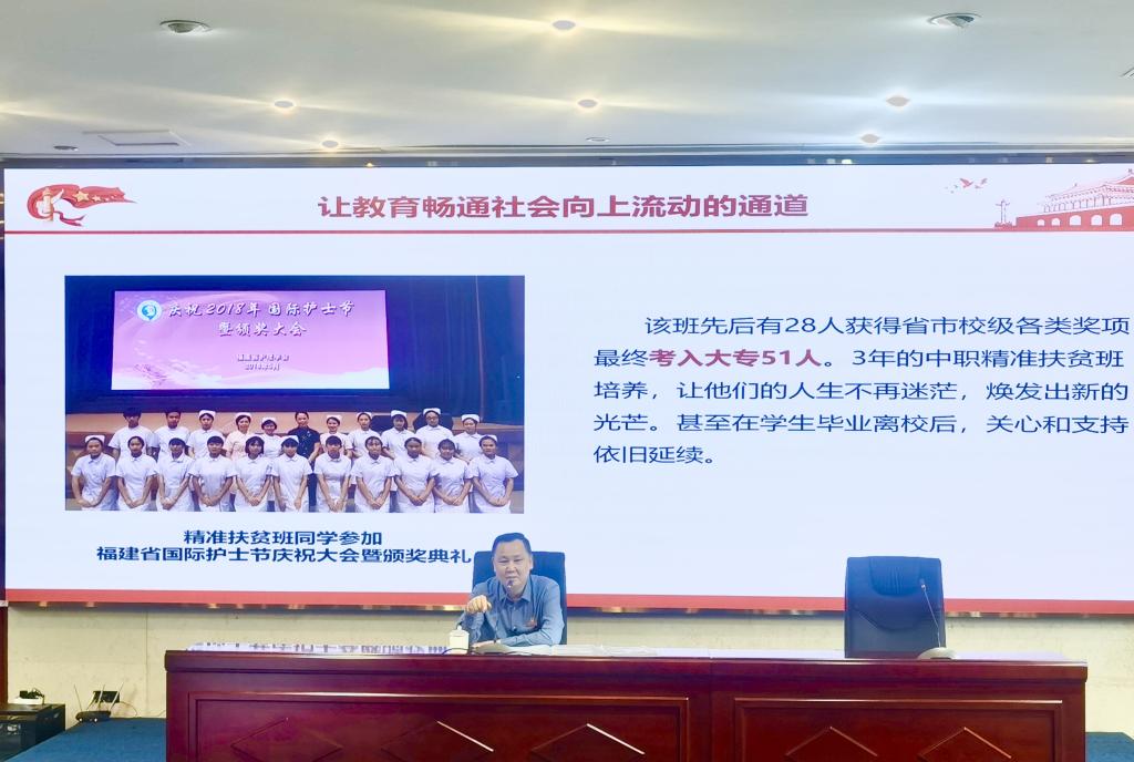 曾武祈以“在接續(xù)奮斗中扎實推進共同富?!睘轭},詳細介紹了習近平總書記在福建期間親自部署的共同富裕重大工程及相關論述,深刻分析了共同富裕的科學內(nèi)涵、實踐途徑及未來征程。他指出:我校始終與黨和國家同頻共振,堅定不移地在共同富裕背景下推動學校的高質量發(fā)展,用極大力量做好青年大學生工作,落實立德樹人根本任務。希望全體黨員教師能夠潛精研思,做共同富裕的堅定學習者;披荊斬棘,做共同富裕的忠實踐行者。