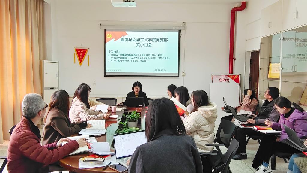 2月23日上午,直屬馬克思主義學(xué)院黨支部在行政樓107會議室開展2022年度組織生活會會前集中理論學(xué)習(xí),會議由直屬馬克思主義學(xué)院黨支部副書記來朋珍主持,全體黨員參加。