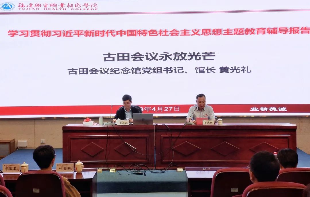 歷史為什么選擇古田?古田會(huì)議紀(jì)念館黨組書(shū)記、館長(zhǎng)黃光禮以《古田會(huì)議永放光芒》的專(zhuān)題教學(xué),帶領(lǐng)在場(chǎng)師生重回古田會(huì)議波瀾壯闊的歷史時(shí)代。黃光禮緊緊圍繞“為什么說(shuō)古田會(huì)議決議是黨和軍隊(duì)建設(shè)的綱領(lǐng)性文獻(xiàn)?”“怎么理解古田會(huì)議確立思想建黨、政治建軍原則?”等思想之惑,從歷史背景、主要內(nèi)涵及歷史貢獻(xiàn)等方面娓娓道來(lái),深刻解讀了古田會(huì)議的時(shí)代價(jià)值和現(xiàn)實(shí)意義。他還生動(dòng)講述了在缺醫(yī)少藥、衛(wèi)生條件落后的閩西蘇區(qū),中國(guó)共產(chǎn)黨依靠群眾、因地制宜,發(fā)展紅色醫(yī)療衛(wèi)生事業(yè)的偉大實(shí)踐。在閩西蘇區(qū)涌現(xiàn)出“紅色華佗”傅連暲、“八路軍中一把刀”江一真、“白求恩第一傳人”葉青山等紅醫(yī)人物,開(kāi)創(chuàng)了“一切為了人民健康”的思想源頭,熔鑄了內(nèi)涵豐富的紅醫(yī)精神。