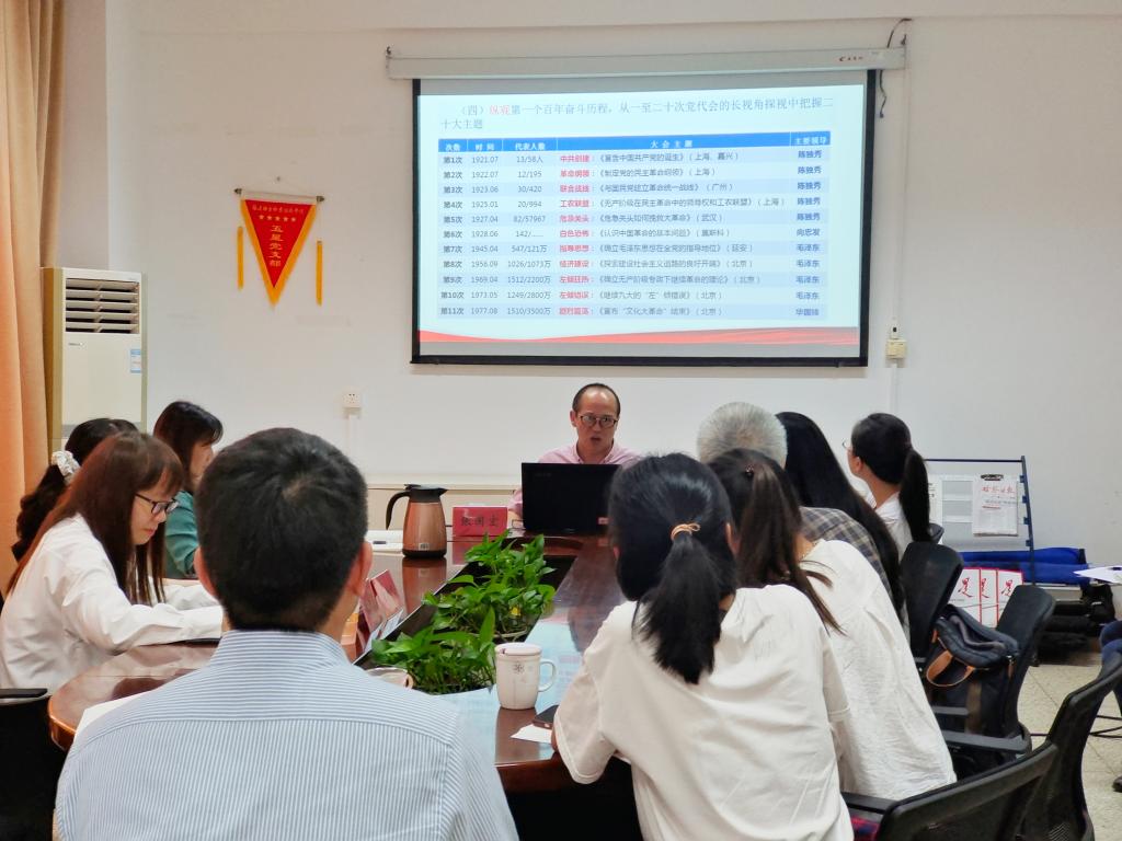 為全面、準確、深刻地理解把握習近平新時代中國特色社會主義思想,在深度融入課程教學中學好黨的二十大精神,2023年5月19日,我校邀請浙江商業(yè)職業(yè)技術學院馬克思主義學院張國宏教授在行政樓107樓會議室作題為《思政課教師如何學深悟透黨的二十大精神》的專題講座。講座由馬克思主義學院院長熊美蘭主持,全體思政課教師參加。