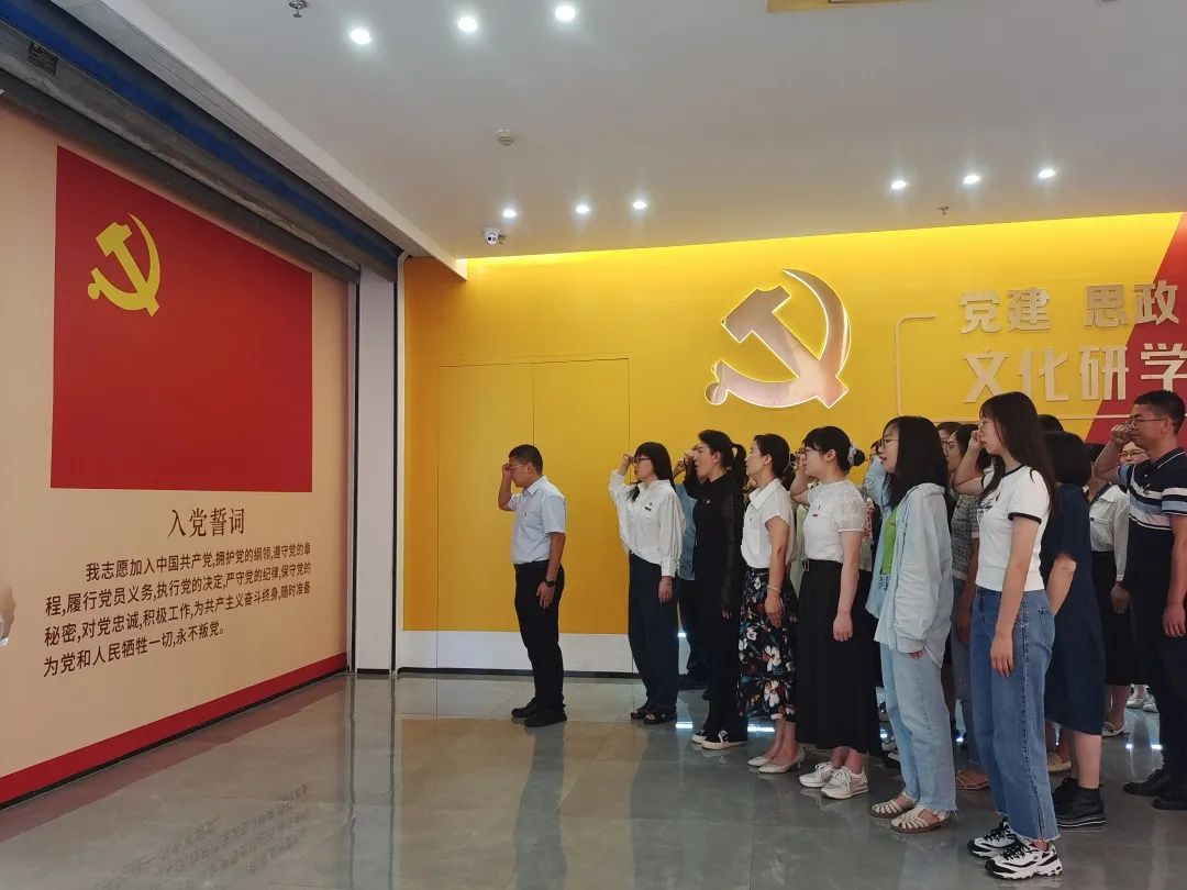 面向鮮紅的黨旗,在張建國的帶領(lǐng)下,全體黨員高舉右拳重溫入黨誓詞。宣誓聲響徹大廳、久久回蕩,是對(duì)初心使命的再宣誓,是接續(xù)奮斗的再出發(fā)。