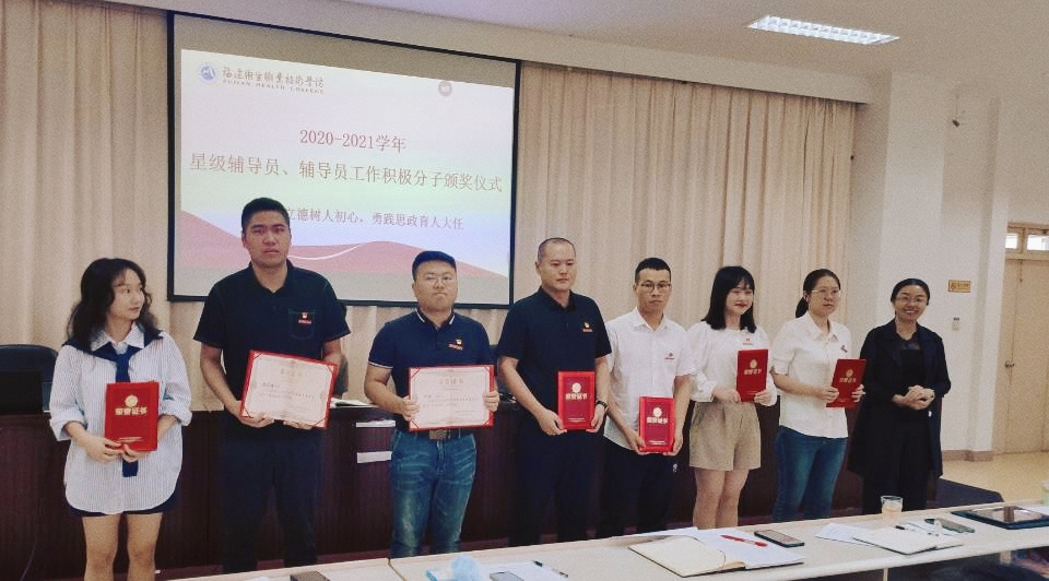 學(xué)生工作部宋維部長(zhǎng)宣讀了《關(guān)于表彰2020-2021學(xué)年星級(jí)輔導(dǎo)員、輔導(dǎo)員工作積極分子的決定》,高長(zhǎng)花、陳清清、翁武峰、葉劍、高繼璐、鄭衛(wèi)敏、林詩(shī)雨、蔣程序、張龍、張夢(mèng)潔、鄒艷輝、陳香、李英、宗帥、王開(kāi)曄共15名老師榮獲“星級(jí)輔導(dǎo)員”稱號(hào),童輝燕、張?zhí)m雋、龍慧、李曉佳、王延昇、李芳琴、吳若云共7名老師榮獲“輔導(dǎo)員工作積極分子”稱號(hào)。