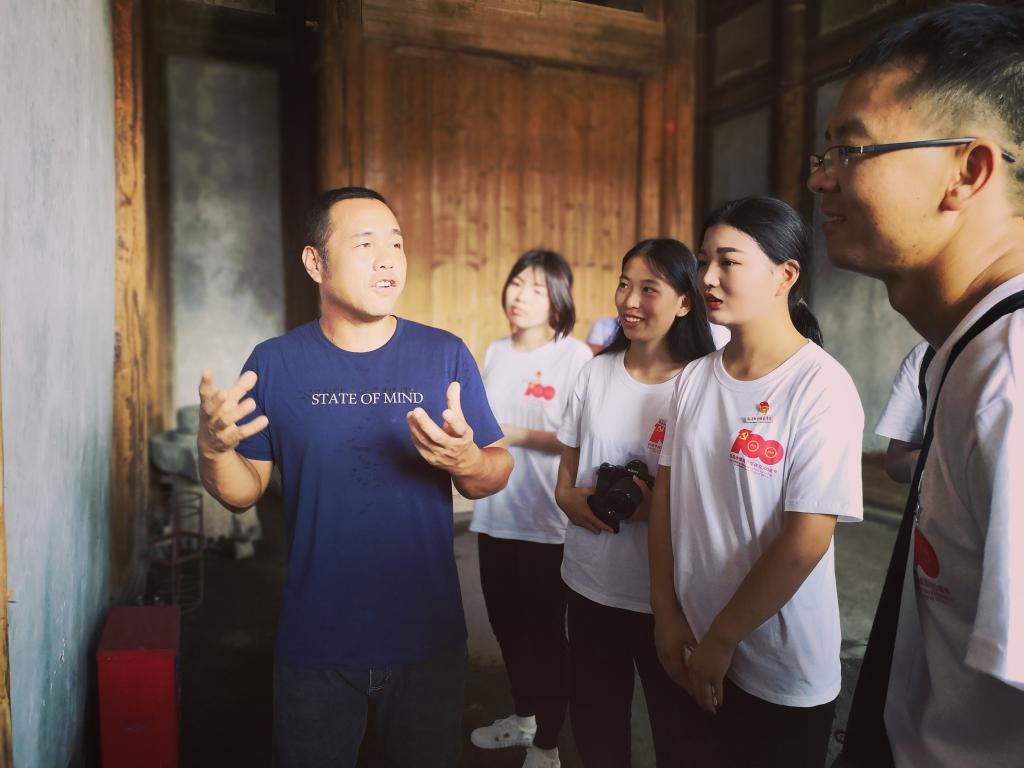 7月4日,初到新坡村臨近中午,烈日炎炎,村黨支部書記江愛盛在村里近四百年的榕樹下為調研師生上了一堂別樣的黨課。他從該榕樹的特點講到新坡村的歷史文化,當前農村面貌的改變?!吧谵r村,長在農村,我對這塊土地有深厚的感情”,憑借這股對農村執(zhí)著的熱愛,江愛盛表達了自己二十多年來堅守基層、扎根農村的經歷與感受,他說:習近平總書記講的金句“江山就是人民,人民就是江山,守江山守的就是人民的心”給他感觸很深,扎根基層、服務人民是共產黨人不變的宗旨,他要用實際行動來履行這一宗旨。同時,他也告誡青年學生,要腳踏實地,走進田間地頭,走進農村,走到百姓身邊,擔當時代的責任與使命,在社會實踐和工作崗位中,盡職盡責,為國家的發(fā)展,群眾的幸福出量出力,彰顯當代青年的使命與責任。