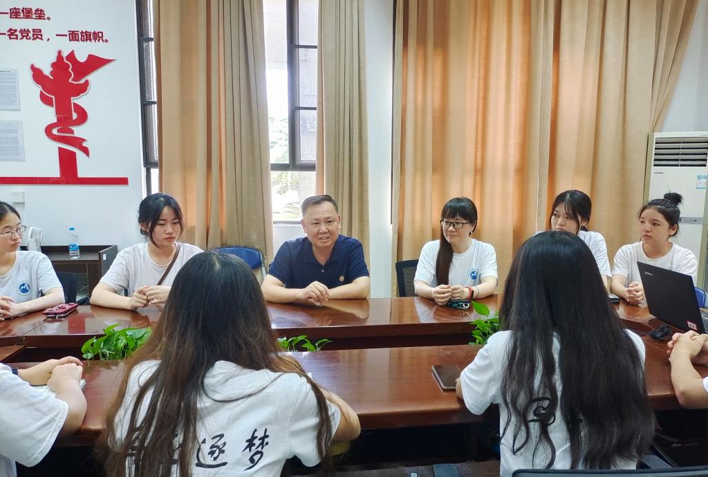 曾武祈認(rèn)真聽取了實踐隊指導(dǎo)老師熊美蘭、隊長葉鎵萍等人的工作匯報,對實踐隊在新坡村開展的黨史宣講、健康宣教、愛心義診等實踐活動給予高度評價。他鼓勵同學(xué)們在實踐中經(jīng)風(fēng)雨、做貢獻(xiàn)、長才干、受教育,叮囑同學(xué)們要珍惜機(jī)遇、抓住機(jī)會、謙虛好學(xué),囑托同學(xué)們要做到知行合一,學(xué)有所獲、學(xué)有所得、學(xué)有所成。