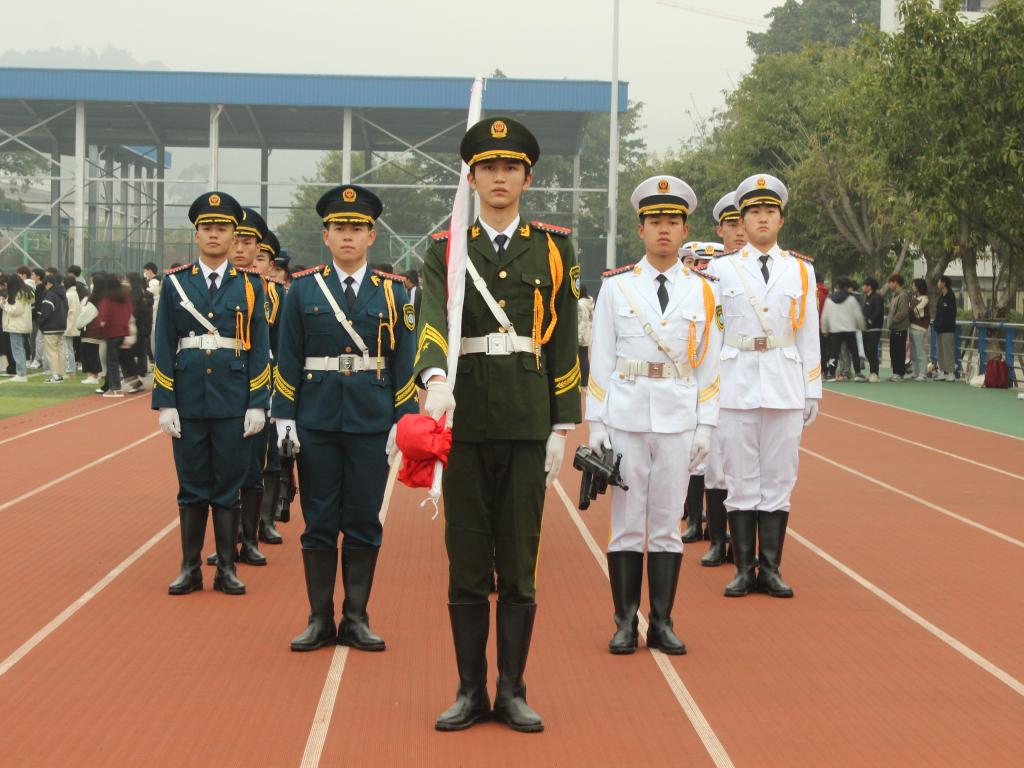 旗手振臂一揮,鮮艷的五星紅旗在威武雄壯的《義勇軍進行曲》中徐徐展開,全體在場師生目視五星紅旗冉冉升起,在熠熠晨光中迎風飄揚,愛國之情在師生們心中滌蕩。升旗儀式,學子們致敬五星紅旗,與國旗一同升起的還有對新學期、新時代的無限向往。
