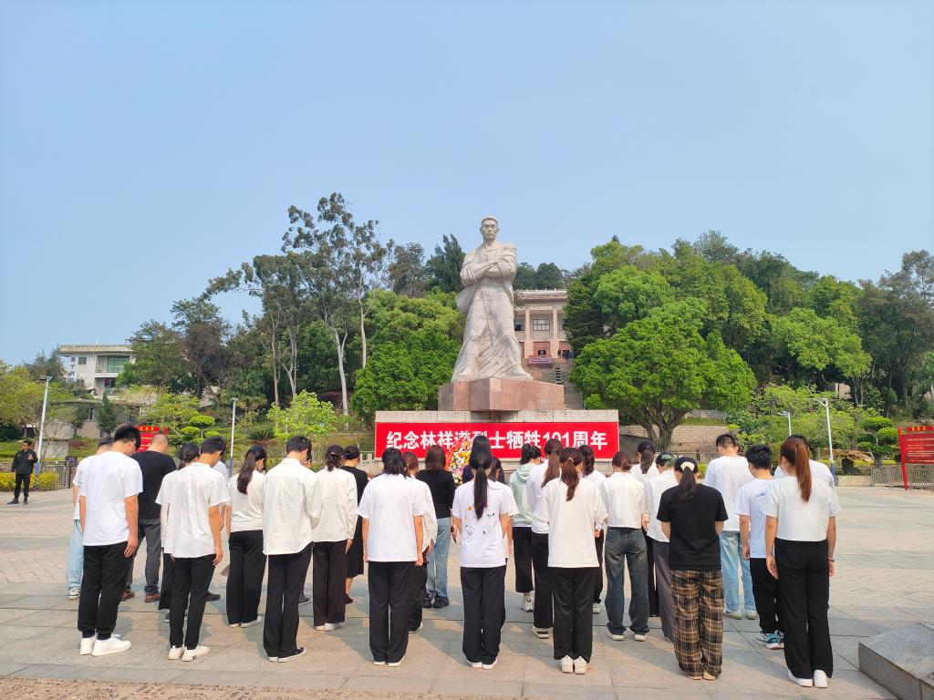 在祭掃活動現(xiàn)場,師生黨員們面向林祥謙烈士雕像莊重肅立,神情肅穆,鞠躬默哀,緬懷革命先烈。默哀結(jié)束后,支部師生從左到右繞林祥謙烈士雕像一周,瞻仰烈士雕像,共同追思工人運(yùn)動先驅(qū)的英勇事跡,感受先烈英勇無畏、為國捐軀的壯烈情懷。