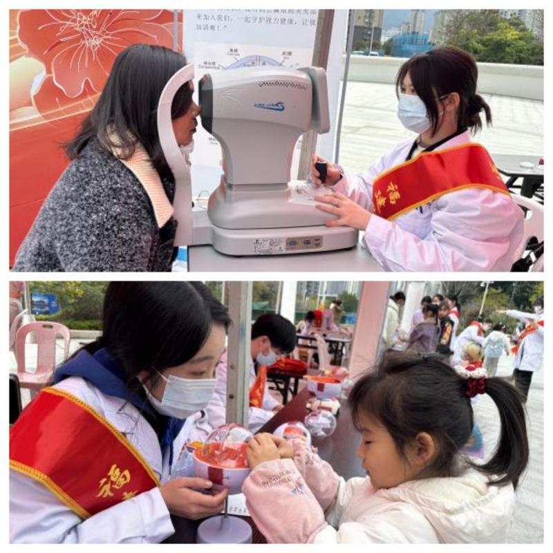 醫(yī)學(xué)技術(shù)與工程學(xué)院眼視光技術(shù)專業(yè)的同學(xué)前往福州科技館新館,踏上春“鋒”送暖與愛(ài)同行的旅程——邀請(qǐng)少年兒童參加眼球結(jié)構(gòu)拼接體驗(yàn),開(kāi)展驗(yàn)光檢查,向同行家長(zhǎng)科普愛(ài)眼護(hù)眼的相關(guān)注意事項(xiàng)。