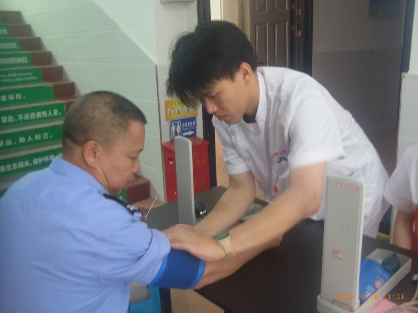參加護理學院“三下鄉(xiāng)”活動,為下黨鄉(xiāng)群眾測血壓