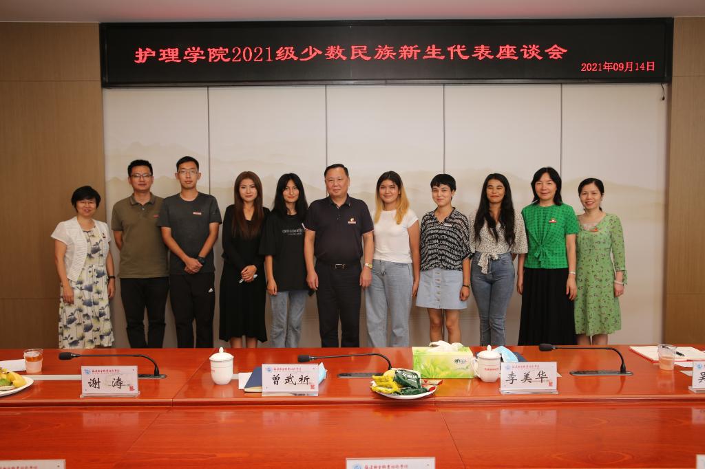 在中秋節(jié)來臨之際,護(hù)理學(xué)院在行政樓五層會(huì)議室召開2021級(jí)維吾爾族、藏族學(xué)生座談會(huì)。校黨委書記曾武祈、黨委副書記李美華,組織統(tǒng)戰(zhàn)部、學(xué)生工作部負(fù)責(zé)人以及護(hù)理學(xué)院黨政領(lǐng)導(dǎo)參加此次座談會(huì)。