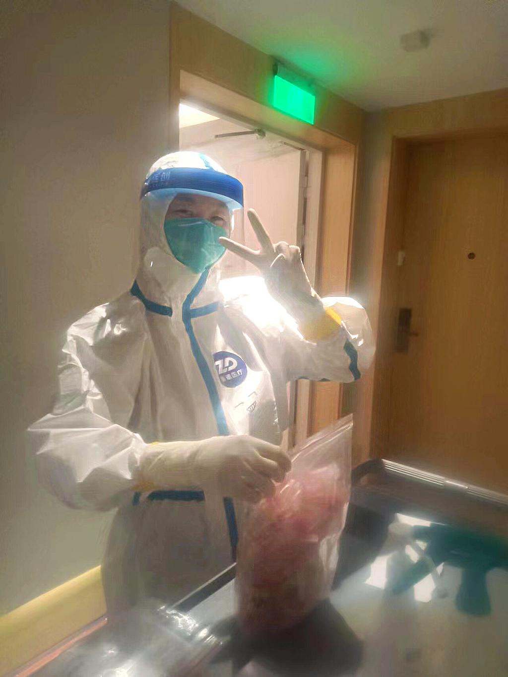 蒲奕彤,我校19級(jí)預(yù)防醫(yī)學(xué)專業(yè)校友。10月25日接到倉(cāng)山區(qū)下渡街道社區(qū)衛(wèi)生服務(wù)中心的通知后,蒲奕彤立馬奔赴隔離酒店負(fù)責(zé)核酸采樣、物資管理、院感工作。每當(dāng)有街道派車將密接人員轉(zhuǎn)運(yùn)過(guò)來(lái),不論時(shí)間多晚,哪怕是凌晨,她都會(huì)立馬做好防護(hù)前往污染區(qū)進(jìn)行隔離人員安排以及抗原、核酸檢測(cè),在病毒和群眾之間筑起了阻斷疫情傳播的堅(jiān)固堡壘。她表示,這是一場(chǎng)沒(méi)有硝煙的戰(zhàn)斗,大家上下同心、眾志成城,我們終會(huì)打贏這場(chǎng)疫情防控阻擊戰(zhàn)!