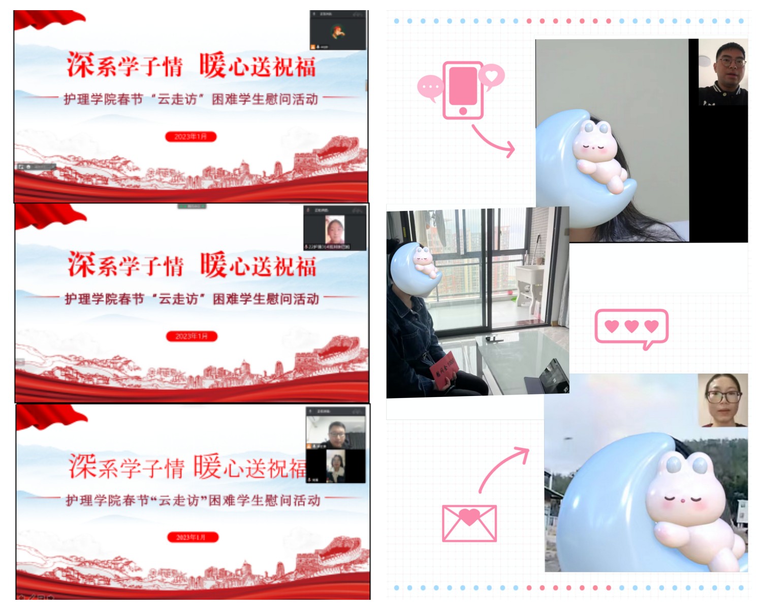 為進一步扎實推進高校資助育人工作,在疫情特殊時期切實關(guān)心關(guān)愛困難學(xué)生,我校以線上微信視頻、電話等方式開展了春節(jié)“云走訪”困難學(xué)生慰問活動,向她們送去學(xué)校的溫暖問候和春節(jié)祝福。